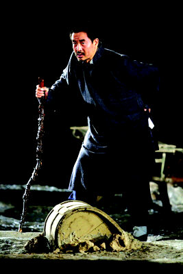 隨著大幕的拉開(kāi),劇場(chǎng)頓時(shí)安靜下來(lái)。演出一開(kāi)始,來(lái)自陜西華陰老腔藝術(shù)團(tuán)的民間藝人們?cè)谂_(tái)上彈唱起歷史悠久的陜西老腔來(lái),一下將觀眾帶入了小說(shuō)所營(yíng)造的特定歷史情境中,接著,白鹿兩家跨越半個(gè)世紀(jì)的故事在舞臺(tái)上全景式地展現(xiàn)開(kāi)來(lái)。導(dǎo)演林兆華嚴(yán)格遵從了現(xiàn)實(shí)主義的表現(xiàn)手法,舞臺(tái)上窯洞、車(chē)輪、黃土地,甚至臨時(shí)從關(guān)中農(nóng)村尋找的山羊都上了場(chǎng),加上作為背景音樂(lè)的秦腔,整個(gè)表演區(qū)散發(fā)出濃郁的鄉(xiāng)土氣息,而漫天飛揚(yáng)的雪花更給全劇增添了悲涼的氣氛。