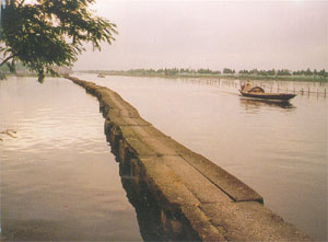 在這具有幾分神秘色彩的古運河邊,4月上旬,浙江省重點工程——紹興市區(qū)龍橫江工程竣工。鹿湖園、永河園是工程重要部分,再現(xiàn)了這里的神秘歷史文化。兩園古石層疊,園深林重,廊橋亭榭,這里可看到古樟、“白鹿”、無疆石、磚雕壁和高大的康熙駐蹕浮雕碑,還可看到王羲之、米芾、徐渭等書法大家撰寫的楹聯(lián)和詩文。漫步水清樹綠、如詩如畫的園中,讓人神游八極,思接千載,感受到濃濃的人文歷史。