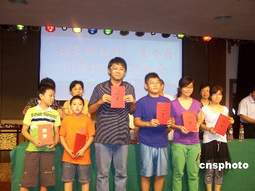 中新社杭州七月十五日電(柴燕菲)“中國尋根之旅•快樂浙江行”夏令營今天下午舉行閉營儀式,來自世界各地的四百三十四名華裔青少年參加儀式,并進行聯(lián)歡活動。