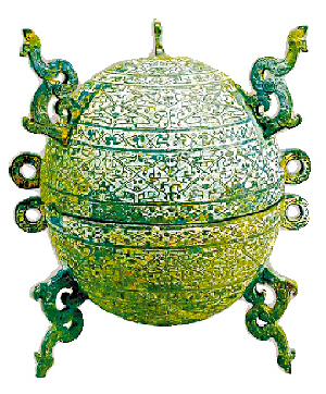這也是被列為禁止出境展覽文物之一的尊盤首次在國內(nèi)展出。同時展出的還有中國出土最大的古代青銅酒器銅尊缶和國內(nèi)所有銅敦中造型最精美、花紋最復(fù)雜的一件銅敦。除這三件國寶級文物外,還將展出戰(zhàn)國時期最高規(guī)格的禮品——九鼎八簋等珍貴文物。