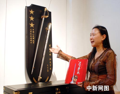 | 中國(guó)人民解放軍三軍儀仗隊(duì)指揮刀是這次展示活動(dòng)中“最年輕”的藏品。(中新社/龔文謨 攝) |