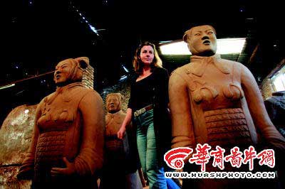 近日,在西安市臨潼,秦兵馬俑博物館對面的一家秦俑復(fù)制展廳里,4尊1.8米高的“大肚子”女性秦俑因?yàn)槠涮貏e的造型不斷地引起一些游客的好奇和關(guān)注。懷著同樣的好奇,記者走近了女俑的創(chuàng)作者、挪威人瑪瑞安。