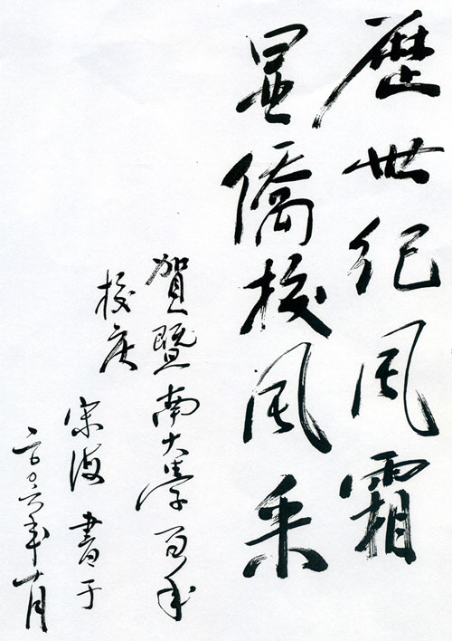 宋海題詞:歷世紀(jì)風(fēng)霜 顯僑校風(fēng)采