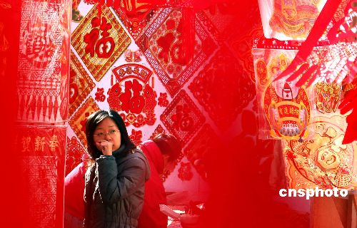 離春節(jié)還有些時日,1月26日,天津古文化街里年味十足。紅燈籠、中國結、帶有生肖圖案的吊錢、福字等已開始大量上市。(中新社發(fā)李勝利攝)