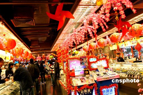 火樹銀花的香港這些天不斷變裝,以傳統(tǒng)風(fēng)俗喜迎新春:香港最著名的購物中心時(shí)代廣場門前,數(shù)十個(gè)憨態(tài)可掬的“福豬”嬉戲;尖沙咀海港城,上千枝紅梅從地面攀上高空,與大紅宮燈搭成一條喜慶長廊;灣仔街市,攤位上擺滿了火紅的春聯(lián)、“!薄暗摗薄皦邸薄办薄艋\和中國結(jié)。