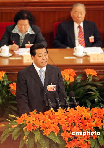 中國人民政治協商會議第十屆全國委員會第五次會議3月3日下午3時在北京人民大會堂隆重開幕。全國政協主席賈慶林向到會的2144名委員做全國政協常委會工作報告。(中新社/毛建軍 攝)