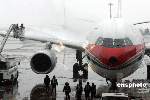 中新社上海二月五日電(記者 ;萦)鼠年新春臨近,今日兩岸春節(jié)包機上海航點進入最繁忙的一天。上午十時整,中國東方航空公司MU五00七航班滿載近三百名臺胞從浦東國際機場準點起飛,飛往臺灣桃園機場。