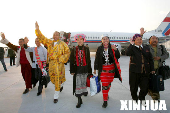 3月1日,來自云南省的全國政協(xié)委員乘飛機抵達(dá)北京。(新華社/王巖 攝)