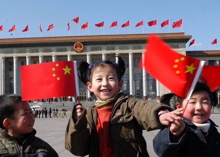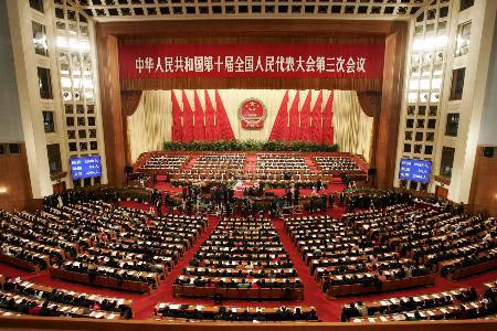 3月14日,十屆全國人大三次會議審議并高票通過《反分裂國家法》后,代表們熱烈鼓掌。(新華社/王建民 攝)