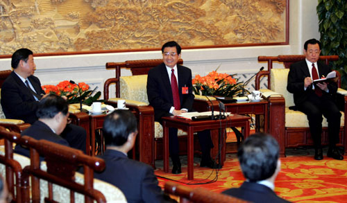 胡錦濤等中共常委分別參加“兩會”審議討論。(圖/新華網(wǎng))