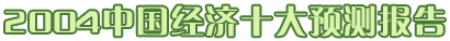 2003年11月27日,上證報與國家信息中心聯(lián)合推出《2004中國經(jīng)濟十大預測報告》。報告認為,2004年,中國 經(jīng)濟將承接2003年的發(fā)展勢頭,繼續(xù)保持高增長態(tài)勢。國民經(jīng)濟有望增長8.5%左右,經(jīng)濟增長周期由復蘇階段向繁 榮階段發(fā)展。