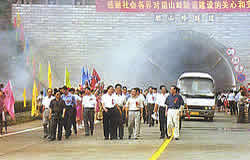 ![]() 省、市、區(qū)有關領導為朋山嶺隧道開通剪彩 |