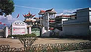 | 二、地理交通 耿馬華僑農(nóng)場(chǎng),位于中國(guó)云南省臨滄地區(qū)耿馬自治縣耿馬鎮(zhèn)之北端美麗的三 尖山腳下。處在公路沿線上,地跨東經(jīng)99°20″、北緯23°30″。有公路與相鄰 縣臨滄、雙江、滄源、鎮(zhèn)康、云縣相連接,往東北部可至楚雄、下關(guān)、昆明與外 地相通,往西經(jīng)孟定、清水河(口岸),南傘(口岸)可與緬甸接壤,通過緬甸 可以進(jìn)入泰國(guó)、老撾、印度等國(guó)。(我場(chǎng)至清水河口岸約130公里)。 為了加快農(nóng)場(chǎng)的建設(shè)發(fā)展,農(nóng)場(chǎng)出臺(tái)了小城鎮(zhèn)建設(shè)規(guī)劃,圖為私人出資建蓋 商用房正如火如荼的進(jìn)行。 |