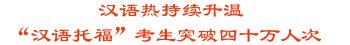 由中國政府主辦的“漢語水平考試”自1993年在韓國實施以來,考生逐年增加,去年已超過7700名,居世界各國之首,今年的考生人數(shù)估計將突破1萬。截至去年底,在中國留學的韓國學生達2.2萬多名,居各國在華留學生之首。