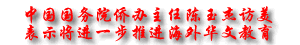 本報(bào)訊:中國(guó)國(guó)務(wù)院僑辦主任陳玉杰于11月5日在美國(guó)紐約看望當(dāng)?shù)氐娜A僑華人,并同當(dāng)?shù)厝A僑華人座談。座談時(shí)陳玉杰主任表示,國(guó)僑辦將制定階段性計(jì)劃,推進(jìn)海外華文教育的發(fā)展。