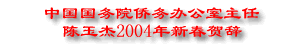中國的不斷進步為僑務(wù)工作的發(fā)展提供了難得的機遇。在過去的一年,各級僑務(wù)部門在增進與海外同胞的親戚情意,保護僑胞在華合法權(quán)益,為海外同胞生存發(fā)展和與中國的合作交流提供服務(wù),促進華僑華人社團的團結(jié)與聯(lián)合,支持海外同胞的反獨促統(tǒng)活動,以及扶持華文教育、薪傳中華文化等方面都做出了積極努力,贏得了海外同胞的信任和支持。在新的一年里,我們將繼續(xù)秉承“為僑服務(wù)”的宗旨,做到情為僑所系、利為僑所謀、權(quán)為僑所用,為海外僑胞的事業(yè)發(fā)展,為中華民族的偉大復(fù)興,為中國的統(tǒng)一大業(yè)做出更大的貢獻。 鄉(xiāng)心新歲切,天涯共此時。此時此刻,我們格外思念臺灣的骨肉同胞,格外牽掛他們的利益和福祉。玉杰衷心地祝福他們新春吉祥、萬事順意。我們堅信,在海內(nèi)外中華兒女的共同努力下,祖國的完全統(tǒng)一一定能夠早日實現(xiàn),祖國大家庭一定能夠早日團圓!