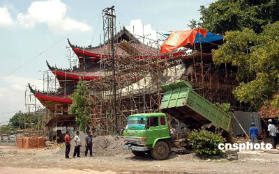 為紀(jì)念鄭和七下西洋六百周年,印尼三寶壟正在新建一座新的三寶公廟,面積3500平方米,廟宇寬大,氣宇軒昂,廟后鄭和七下西洋巨幅壁雕,人物逼真,氣勢(shì)磅礴。