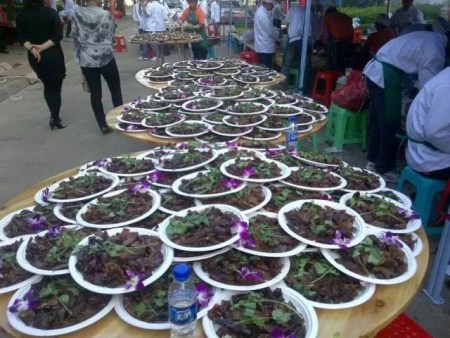 拌好的糕料全部裝入籠內(nèi)后,面上用糖水抹平,講究的人家還取紅棗、桂花、芝麻等小料在糕面上擺成圖案,如“鳳采牡丹”、“龍鳳呈祥”,“恭喜發(fā)財”、“五谷豐登”等。糕蒸好后,色、香、味俱全,非常美觀。