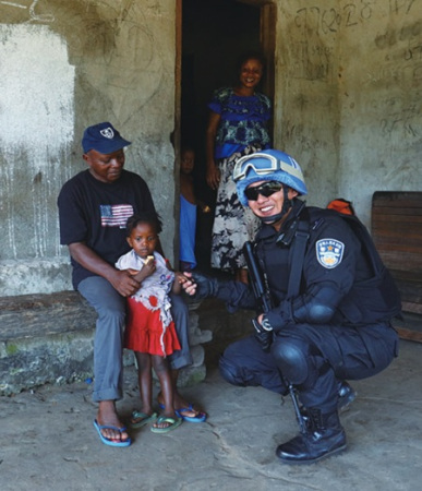 第四支赴利比里亞維和警察防爆隊履職期間,圓滿完成維和任務(wù)627批次16821人次,妥善處置群體性事件16起,獲得當(dāng)?shù)孛癖娨约皣H社會的高度評價,被聯(lián)合國稱贊為全球16個任務(wù)區(qū)89支維和防暴隊中最高水平。