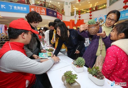 尤銘瑜和媽媽挑了一盆喜愛的多肉盆栽,還現(xiàn)場探討起了多肉的種植方法,以避免像之前一樣,把可愛的多肉養(yǎng)成了“瘦肉”。