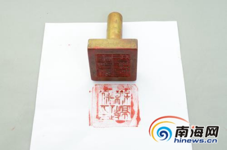 方形銅印,據(jù)其銘文推斷,它是由當(dāng)時(shí)的民國(guó)政府國(guó)家印鑄局統(tǒng)一鑄造的篆文官印,有統(tǒng)一的形制和統(tǒng)一的編號(hào),下發(fā)到各級(jí)官辦機(jī)構(gòu)使用。此類(lèi)保存完好的民國(guó)時(shí)期縣印在海南省屬首次發(fā)現(xiàn)。