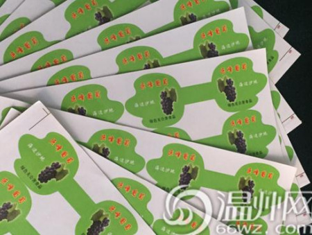 所謂的“越南青芒”標(biāo)簽,便是出自此處。此外,該商店里還有紅富士、阿克蘇、冰糖心等10余種水果標(biāo)簽。記者表示要一款葡萄的標(biāo)簽,店家便給了記者一款“巨峰葡萄”的標(biāo)簽,“一張8個(gè)標(biāo)簽,5毛一張?!痹摌?biāo)簽上,還寫著“海邊沙地,綠色無公害食品”字樣。
