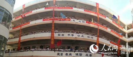 人民網(wǎng)???月1日電 (記者 毛雷)“高考加油,高三必勝……”高考臨近,6月1日,在海南僑中校園里,上演了一場別開生面的“喊樓”儀式。