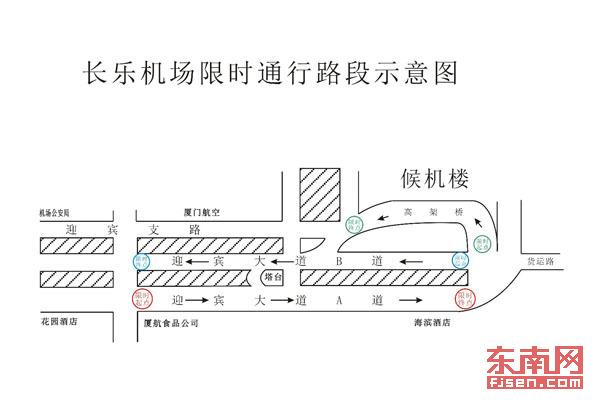 長樂機場限時通行路段示意圖