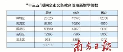 去年底發(fā)布的《佛山市義務(wù)教育階段學(xué)?;A(chǔ)教育設(shè)施五年提升行動計劃(2016-2020)》顯示,到2020年,佛山全市將新建、改建、擴(kuò)建各類義務(wù)教育階段學(xué)校176所,新增學(xué)位約18萬個。