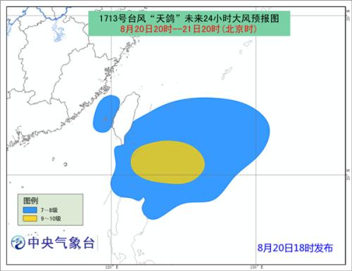 大風(fēng)預(yù)報(bào):20日20時(shí)至21日20時(shí),巴士海峽、臺(tái)灣海峽、臺(tái)灣以東洋面以及臺(tái)灣東南部沿海將有7-8級(jí)大風(fēng),“天鴿”中心經(jīng)過(guò)的附近海域的風(fēng)力有9-10級(jí),陣風(fēng)11級(jí)。