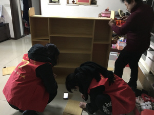昨日(12月20日),(浙江省青田縣)石門社區(qū)的黨員志愿者們上門為老李家的小孫女安裝簡易書架。