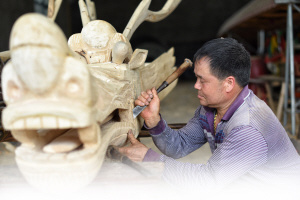 龍頭是龍舟制作過(guò)程中最為重要和莊嚴(yán)的環(huán)節(jié),“制造龍頭工藝相當(dāng)復(fù)雜,每一道工序環(huán)環(huán)相扣,講究的就是流暢有力,否則就會(huì)破壞龍的氣勢(shì)?!睆凝堊?、龍須、龍眼至龍角,放樣、雕刻、鑲縫、漆釉、作畫(huà)等幾十道工序,需要工匠潛心制作。“龍頭是勇立潮頭、爭(zhēng)先進(jìn)位的龍舟精神最為集中反映的縮影,也是精益求精、敬業(yè)創(chuàng)新的工匠精神最為鮮活的體現(xiàn)?!贝兼?zhèn)宣傳委員胡素源說(shuō)道。憑借一代一代手工薪火相承,傳統(tǒng)的龍舟制作技藝被傳承至今。