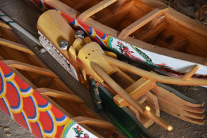 “做龍舟是一個(gè)講究的活兒,每道工序都馬虎不得?!泵癖葎澲埳碚f(shuō)道。從選材到成品,仍需和數(shù)百年前一樣,歷經(jīng)數(shù)十道工序,光選材就要花費(fèi)數(shù)月,需挑選本地深山質(zhì)量上乘的杉樹(shù)用于龍身大體,選用防蟲(chóng)防蛀的圓木用作龍舟攔梁,每一顆船釘均為手工量身打造,包括黏連用的桐油灰都是親手配比制作。而選材僅是第一步,開(kāi)料、放樣、雕刻、捻縫、打磨、上色,每一步都要求細(xì)致和精湛。“做龍舟粗細(xì)活兒都要會(huì),要會(huì)斧子活兒,也要會(huì)雕花活兒”。需要一刨一斧開(kāi)出尺寸適宜、線條流暢的舟身,還要雕出氣勢(shì)恢宏、祥和喜慶的龍頭龍尾。