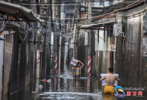 9月2日,天氣轉(zhuǎn)晴,水位開始慢慢下降,由于受災(zāi)嚴(yán)重,汕頭潮南區(qū)司馬浦鎮(zhèn)依然被洪水圍困。南方網(wǎng)全媒體記者 張由瓊 實習(xí)生 徐杰 攝