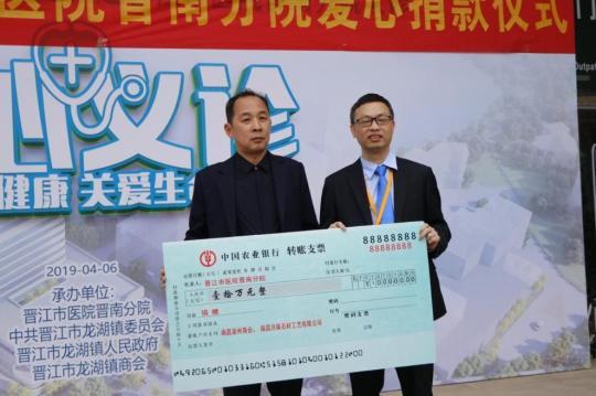 “這筆捐贈來得非常及時,我們深表感謝,這對我們醫(yī)院的后續(xù)發(fā)展建設(shè)將起到非常大的助推作用” 晉江市醫(yī)院晉南分院院長陳名智表示,這筆款項他們將全部用于晉南分院后勤保障樓的建設(shè)。