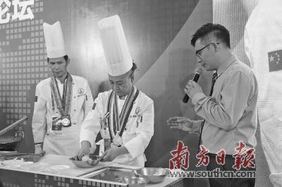 中國烹飪大師、順德廚師協(xié)會副會長李兆基展示了釀鯪魚的做法。李兆基認為,這道菜用的是刺多的鯪魚,很考驗刀功,又有煎和燜兩種技藝,是一道很能代表順德廚藝的經(jīng)典菜式。