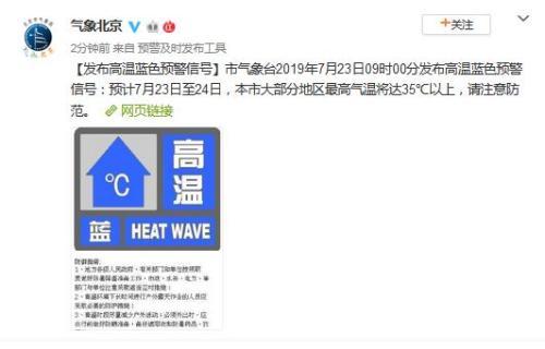 北京發(fā)高溫藍(lán)色預(yù)警:23-24日最高氣溫將突破35℃