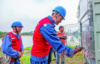 佛山供電局工作人員到勒流稔海村為鰻魚養(yǎng)殖戶開展用電檢查。劉酩詩 攝