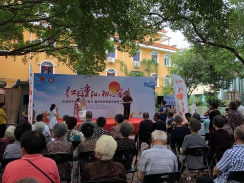 2019年10月7號,“紅日重陽,初心篤情” 慶祝新中國成立70周年溫州市非物質(zhì)文化遺產(chǎn)體驗(yàn)活動(dòng)在溫州市松臺(tái)街道水心社區(qū)樟組團(tuán)公園舉行。