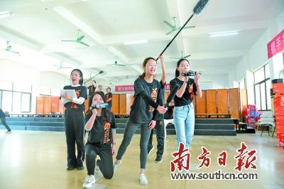 “鐘同學,你不要走過來,要跑上來。全同學,你的動作沒問題,關(guān)鍵是一直在晃,要改?!币粋€小段排練結(jié)束,沈朝政現(xiàn)場調(diào)整演員們的動作、狀態(tài)。他是主演之一,也是廣東文理職業(yè)學院表演系教師。對一些群唱演員,沈朝政分享起自己的表演經(jīng)驗:“注意要學會‘搶戲’。放大自己的表演,表情盡量夸張。”