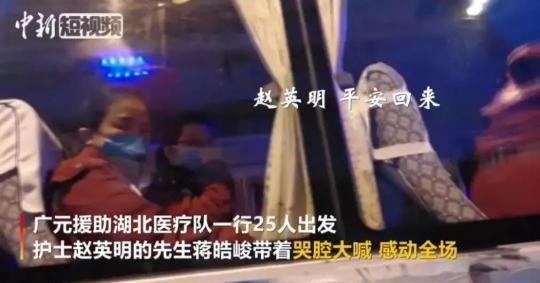 “趙英明,聽(tīng)到?jīng)]有,平安回來(lái)!平安回來(lái)一年的家務(wù)我包做了……”1月28日,在四川省廣元市支援武漢的醫(yī)療團(tuán)隊(duì)出發(fā)前,護(hù)士趙英明的愛(ài)人蔣昊峻突然帶著哭腔對(duì)老婆大聲喊道。