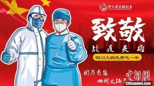 為向逆行者致敬,表達(dá)對(duì)他們的感激之情,四川省火鍋協(xié)會(huì)發(fā)出“請(qǐng)?jiān)钡柔t(yī)療隊(duì)免費(fèi)吃火鍋一年”的倡議,得到四川多家火鍋店積極響應(yīng)。