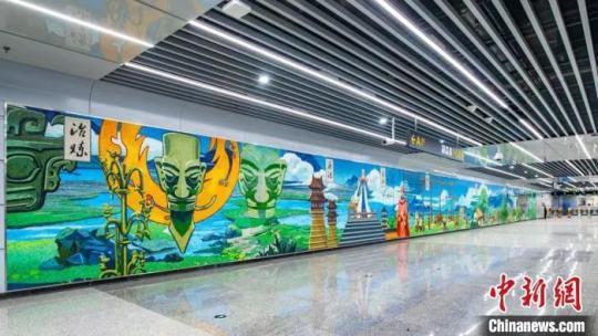 軌道交通6號(hào)線建設(shè)北路站大廳一角,該線主題為“科技華章、創(chuàng)新菁蓉”。 尹攀 攝