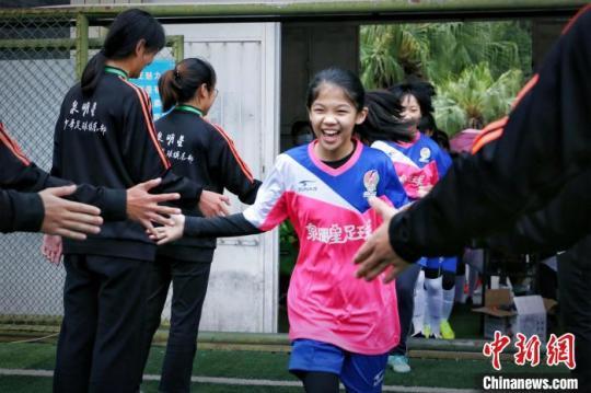 入場(chǎng)的女孩們享受足球運(yùn)動(dòng)的快樂(lè)和魅力。林楷煜 攝