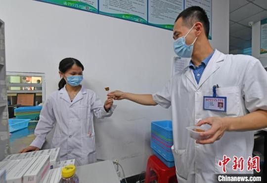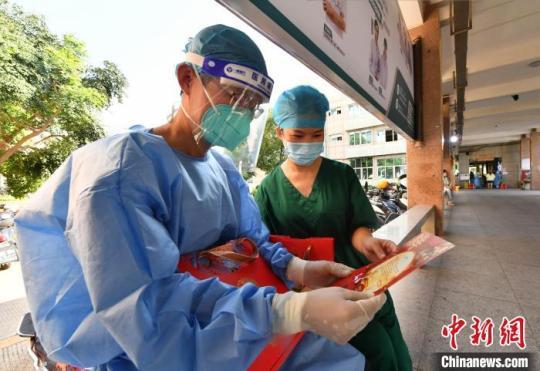 拿到送來(lái)的月餅后,護(hù)師郭連蓮與藥師吳小北夫妻利用休憩時(shí)間提前過(guò)上中秋節(jié)?!×趾霔v 攝