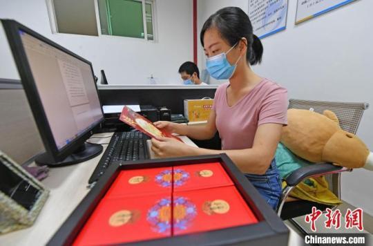泉港區(qū)融媒體中心,一名堅(jiān)守抗疫一線的新聞媒體記者在閱讀青商會(huì)送來(lái)中秋賀卡。 林弘梫 攝