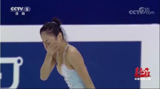 一曲結(jié)束,韓聰?shù)鹊搅俗喴蝸淼浆F(xiàn)場的隋文靜,他推著自己的搭檔滑上冰面,而隋文靜早已掩面哭泣。