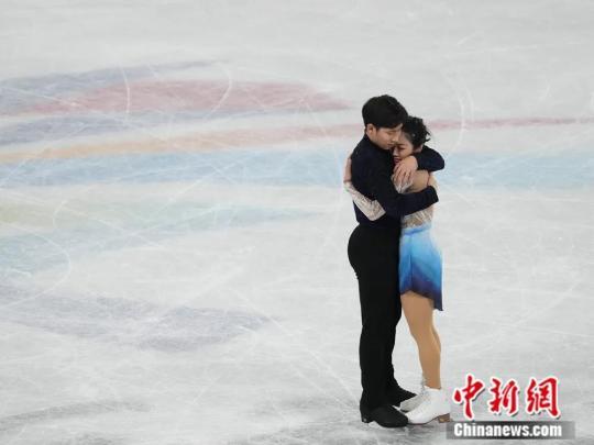 圖為隋文靜/韓聰擁抱。中新社記者毛建軍攝