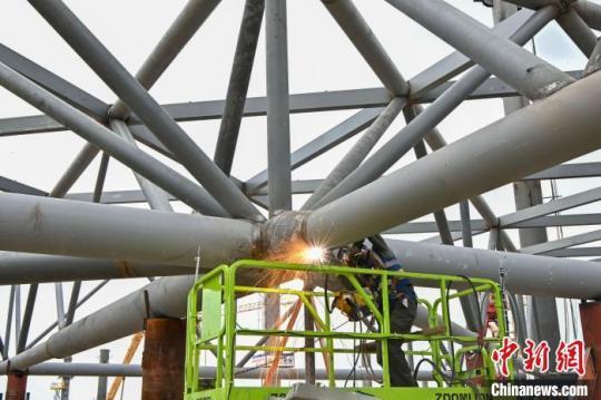 8月30日,中鐵建設(shè)集團有限公司工作人員焊接汕頭站新站房的鋼結(jié)構(gòu)屋架。記者 陳驥旻 攝