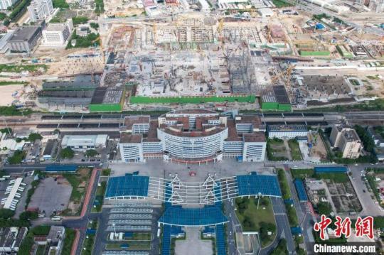 8月30日,航拍建設(shè)中的汕頭站新站房。(無人機照片) 記者 陳驥旻 攝